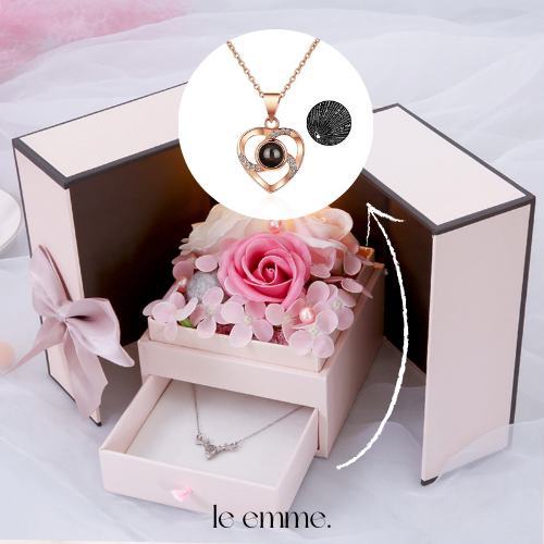 Colar Eu Te Amo Projeção em 100 idiomas. Acompanha Caixa (Com flor com laço, não acompanha led) perfeito para um presente irresistível.
