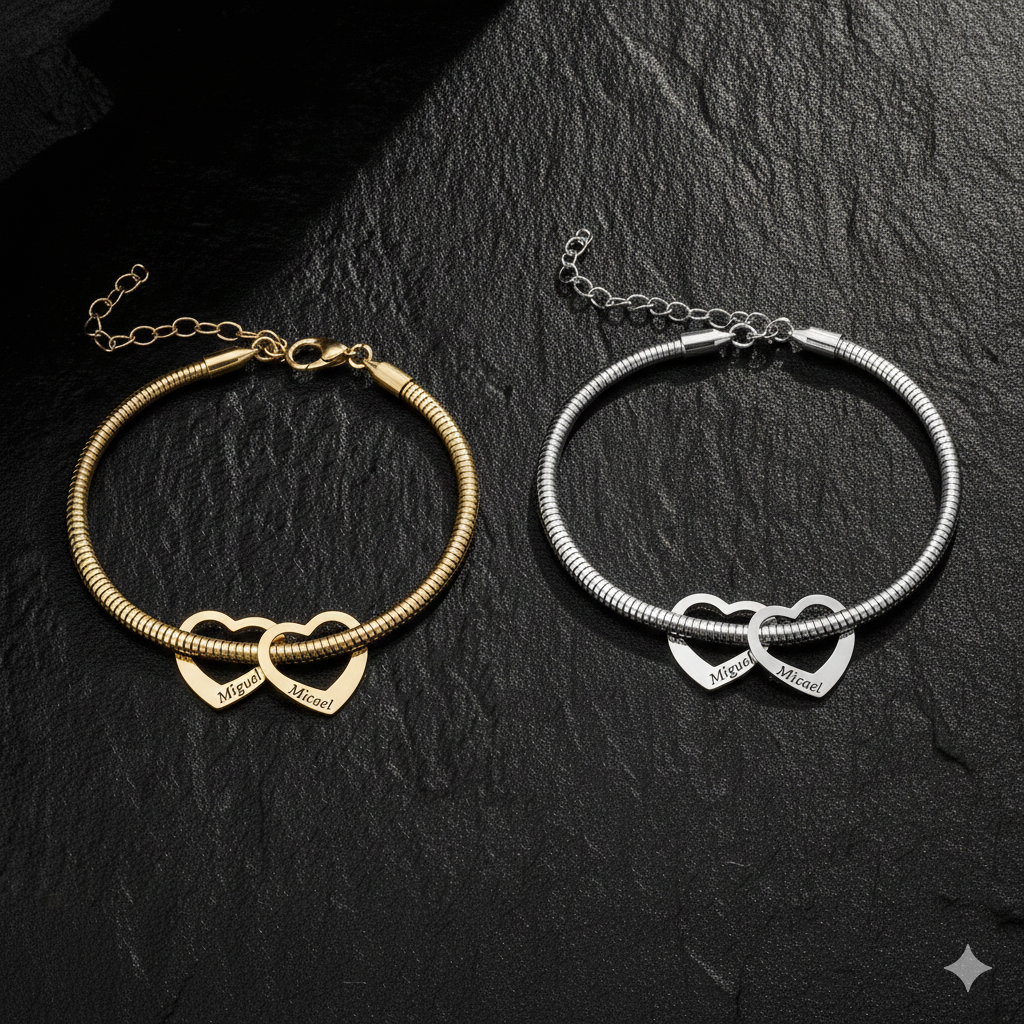 A Pulseira Corações Personalizadas da Le Emme é uma peça sofisticada e cheia de significado, feita para mulheres que carregam seus amores sempre por perto.